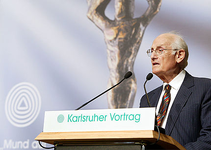 Dr. Hans Kurer, Sprecher des Nachwortes zum Karlsruher Vortrag von Michael Blumenthal im Jahr 2003. (Quelle: Bildarchiv Akademie Karlsruhe)