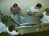 Beim Transport der demontierten zahnärztlichen Einheiten mussten die jungen Zahnärzte mithelfen. Zahnärztinnen gab es damals noch wenige – sowohl an der Akademie als auch anderswo. Der gute Korpsgeist des Akademieteams half auch diese Aufgaben zu bewältigen. Wir hatten richtig Spaß dabei.