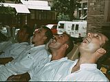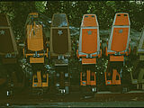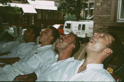 Im warmen Karlsruher Sommer konnten die Einheiten und die Wartezimmerbestuhlung bis zur Abholung im Hof gelagert werden. Die farbenfrohen Behandlungsstühle in ungewohnter Umgebung waren ein beliebtes Fotomotiv. Behandelt wurde dort niemand – „Freilichtreihenuntersuchungen“ wären aber durchaus möglich gewesen und wurden prompt nachgestellt.